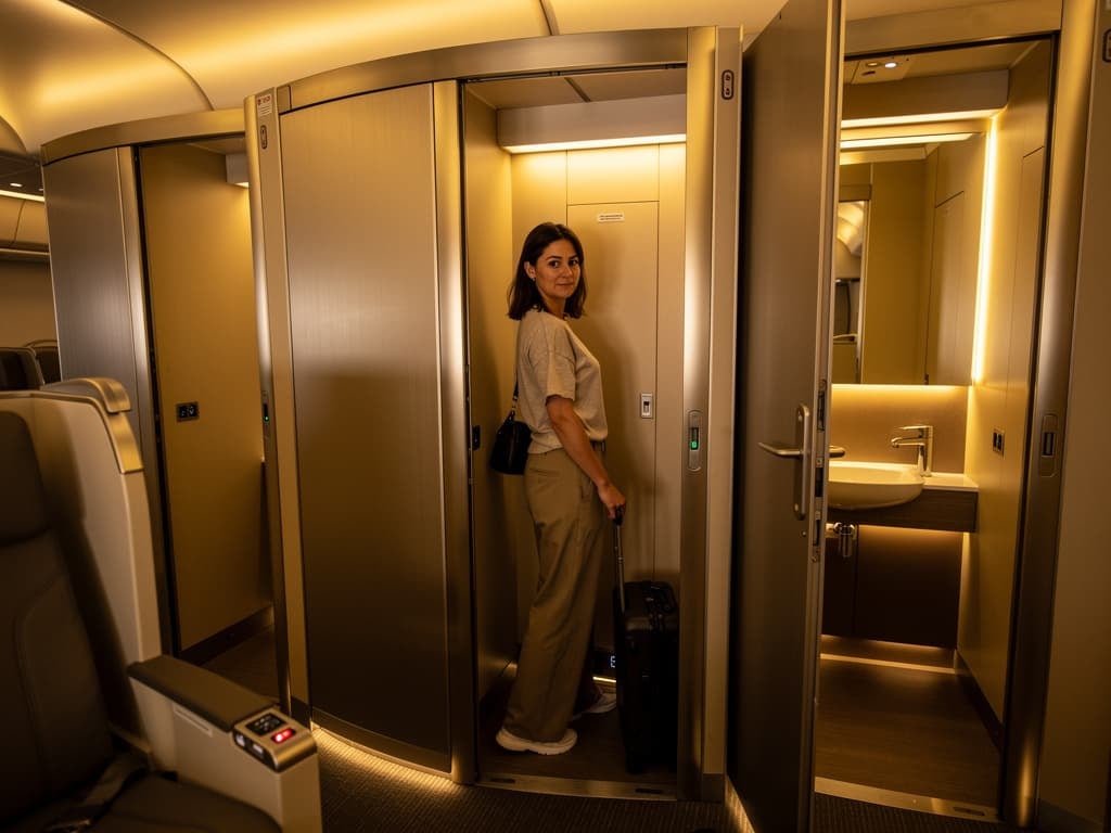 | Emirates A380 First Class | No — shared shower spas (2 per cabin) | Yes (shared) | Up to 14 passengers | In service since 2008 |